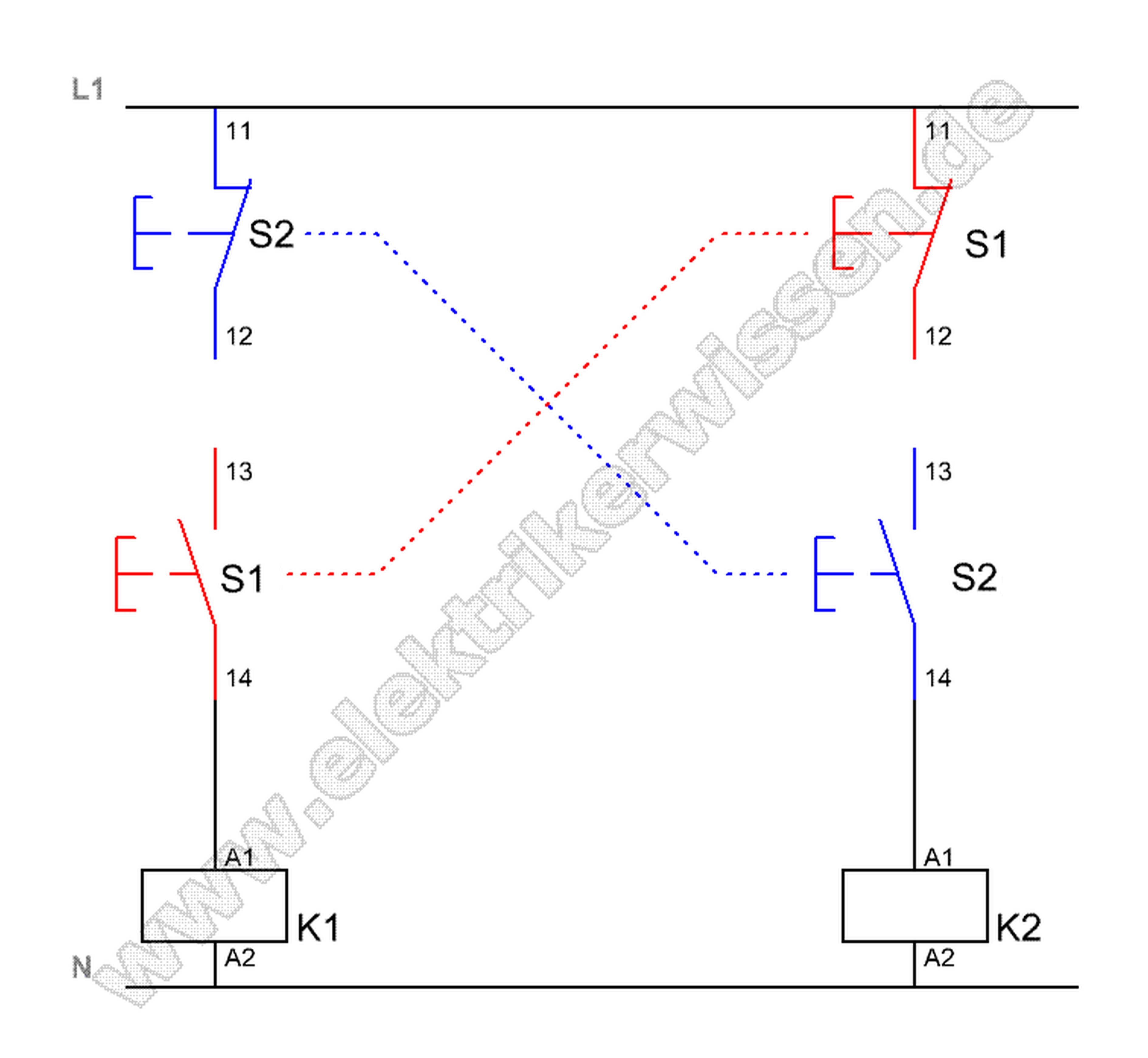 Bestimmte Steuerungen müssen gegeneinander verriegelt werden um Sicherheit und Funktion zu gewährleisten. Eine Aufzugssteuerung muss beispielsweise so verriegelt sein, dass ein Aufzug nicht zeitgleich versucht hoch und runter zu fahren. Bei der Verriegelung einer Wendeschützschaltung besteht grundsätzlich die Möglichkeit der Tasterverriegelung und der Schützverriegelung. Immer wieder taucht die Frage auf, welche Variante „besser“ ist oder ob beide Varianten zusammen nötig sind. Darauf möchte ich hier kurz eingehen.